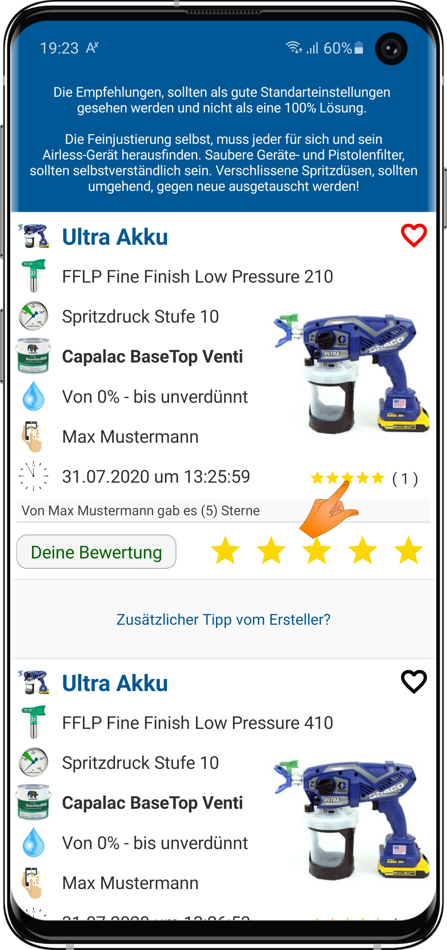 dass wenn Du auf die Produktbeschreibung tippst, Du in die Spritzempfehlung anderer App-Nutzer gelangst?