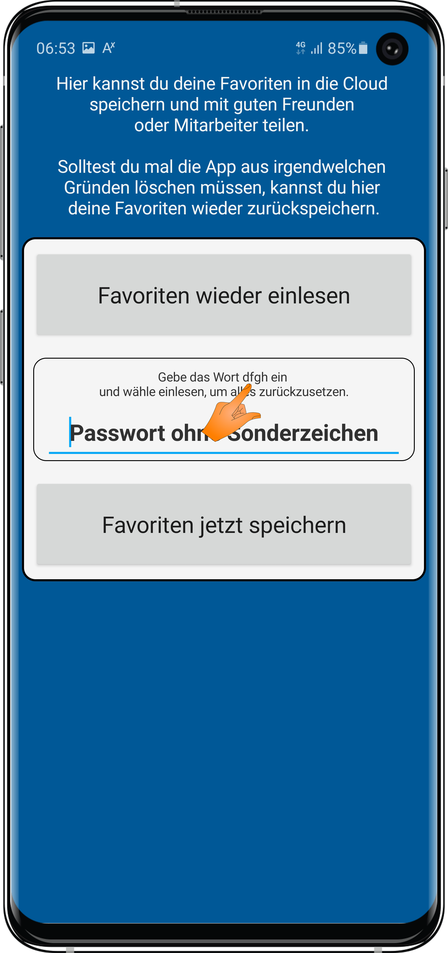 dass Du deine Favoriten alle wieder zurücksetzen kannst, in dem Du das Passwort dfgh eingibst und auf Favoriten wieder einlesen tippst?